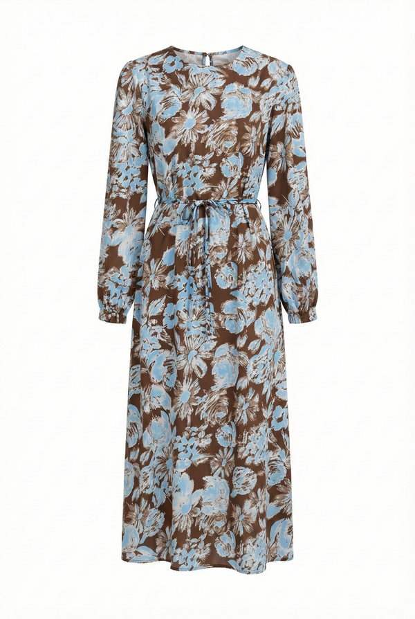MINI FLOWER PRINT DRESS WITH NO WAIST CUT -